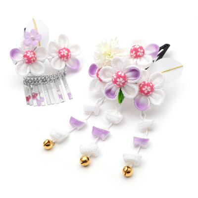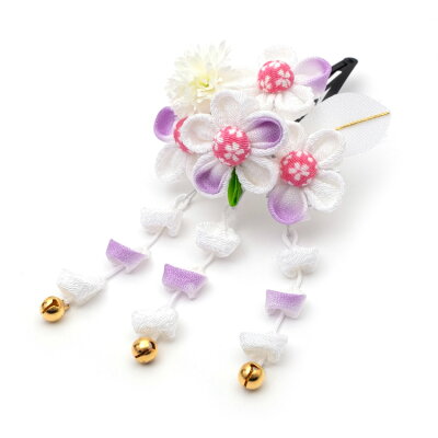 七五三 髪飾り 3歳 7歳 子供用髪飾り 2個セット ピンク 2504 パッチン式 髪留め 5歳 日本髪 和柄 花柄 和雑貨 鈴
