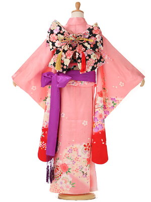 七五三 着物 7歳 フルセット レンタル 【絹のきもの】正絹 七五三 衣装レンタル 753 子供 女子 七歳 きもの しちごさん 写真撮影 前撮り お出かけ 七草 送料無料 結び帯 115cm 120cm 125cm ピンク jk7582【レンタル】