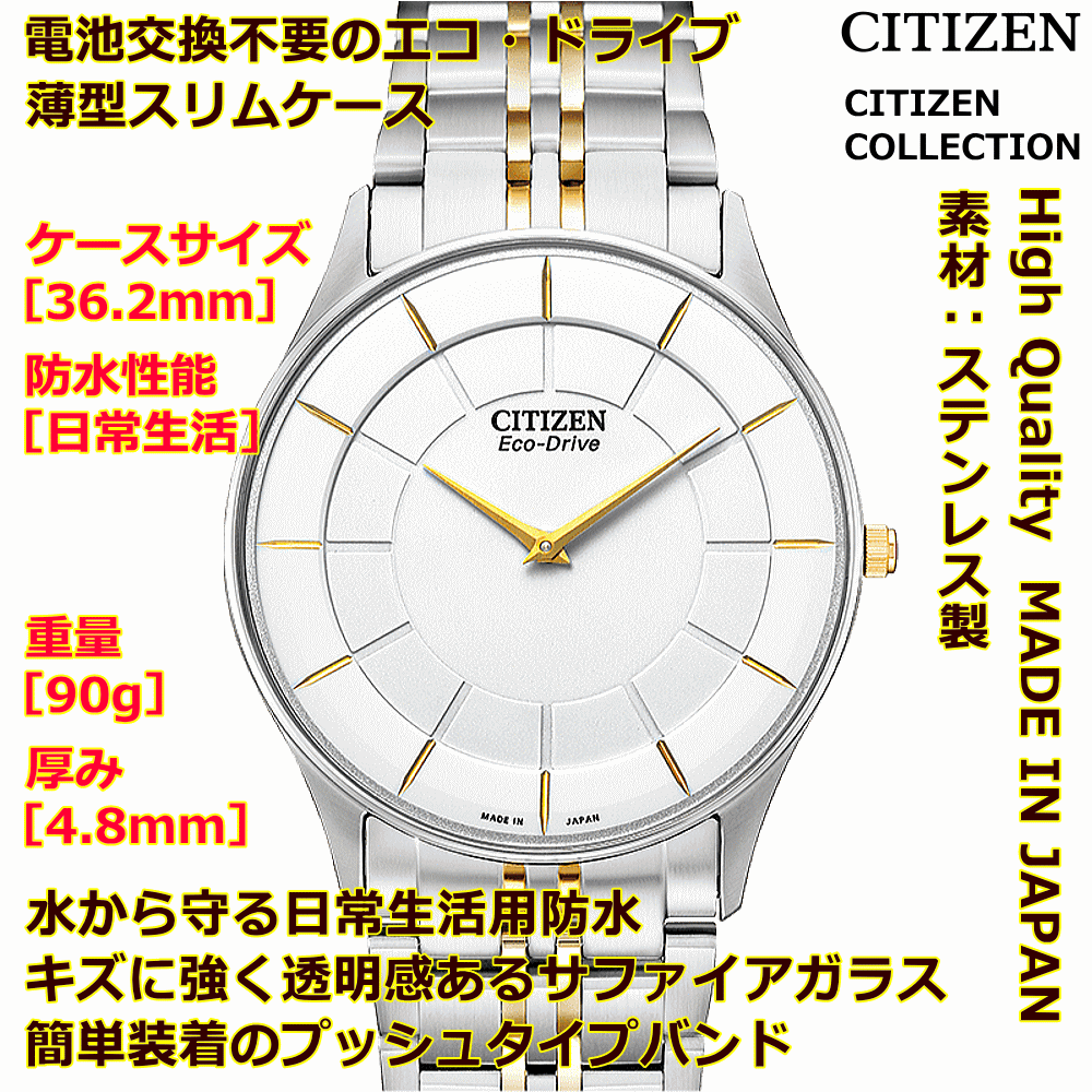 ◆ギフト対応アイコン詳細 ■主な特徴CITIZEN CITIZENコレクション エコ・ドライブ 商品詳細ムーブメントエコ・ドライブ(光発電6ヶ月) 精度:±15秒/月サイズ重量:90g 厚み:4,8mmケースケースサイズ【⇔】:36,2mm ステンレス 日常生活用防水ガラスサファイアガラスバンド両プッシュ観音開きタイプ機能過充電防止機能■腕時計のサイズ調整も無料でお受けいたします♪