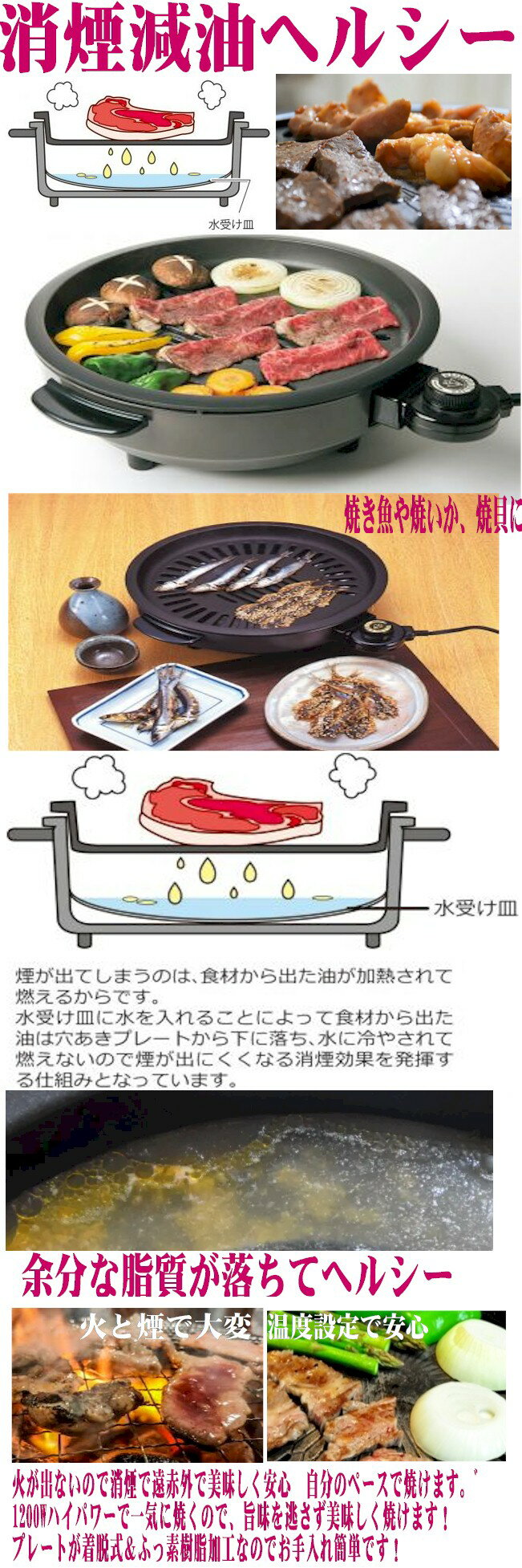 焼肉ブレート 無煙 人気 電気消煙グリル 電気ホットプレート ヘルシーグリル脂肪 油落とし消煙グリラー ヘルシー 電気グリル鍋 メーカー 1人用 2人用 人気ランキング 電気鍋 ステーキ 焼肉 焼魚 焼貝 いか焼き レアステーキ 焼野菜 ジンギスカン 焼牡蛎 焼はまぐり