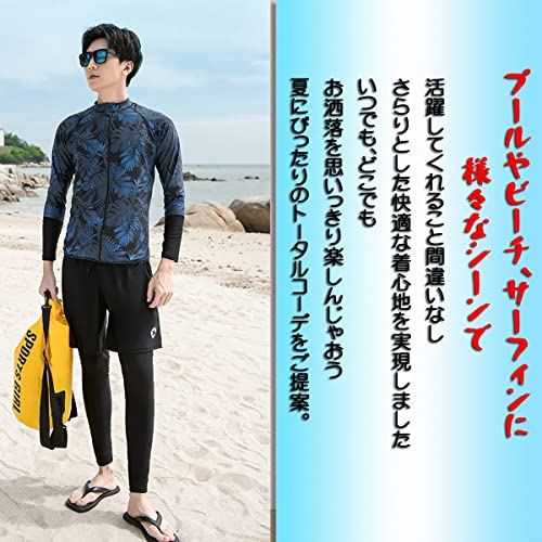 ・UVかと体型カバー叶える魔法のアイテム 肌なじみのいい柔らかな素材でそのまま水に入れるのが売れいい!速乾性のある素材なのでトレーニングウエアとしてもOK・タンキニとラッシュガード上下がセットになってるのでさりげなくコーディネートが決まってカッコいい!速乾性も高く、紫外線対策やシュノーケリングやサーフィンなどマリンスポーツに幅広く活躍します・長袖、ロングパンツがセットになっているのでクラゲや擦り傷防止にも役立ち、体に良くフィットする機能的なスポーティデザインだから、動きやすくて快適です。