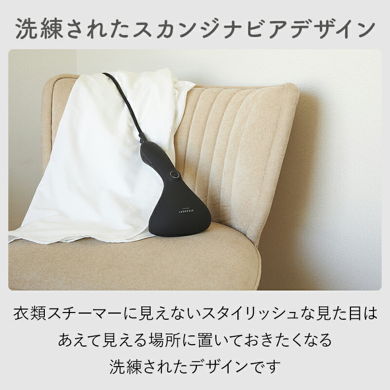 一見、衣類スチーマーに見えないスカンジナビアデザインを取り入れたスタイリッシュな見た目は、インテリアの一部として飾っていても違和感がないほど。