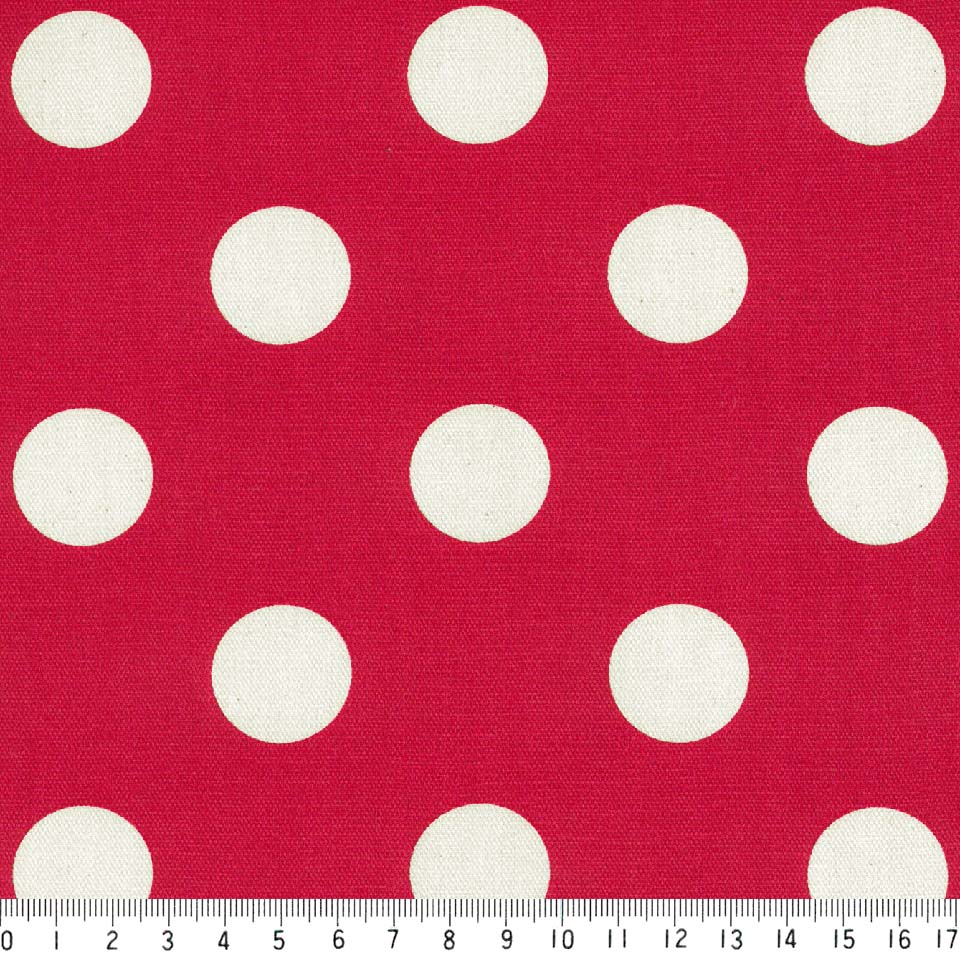 水玉 ドット 25ミリ ネガ 7886-70 レッド 2.5センチ ドット 夜柄 中サイズ 赤 10cm単位 やや厚手 生成りオックス生地 綿100% 110cm 布 エプロン バッグ ハンドメイド カルトナージュ クロス クッション 商用利用可 生地