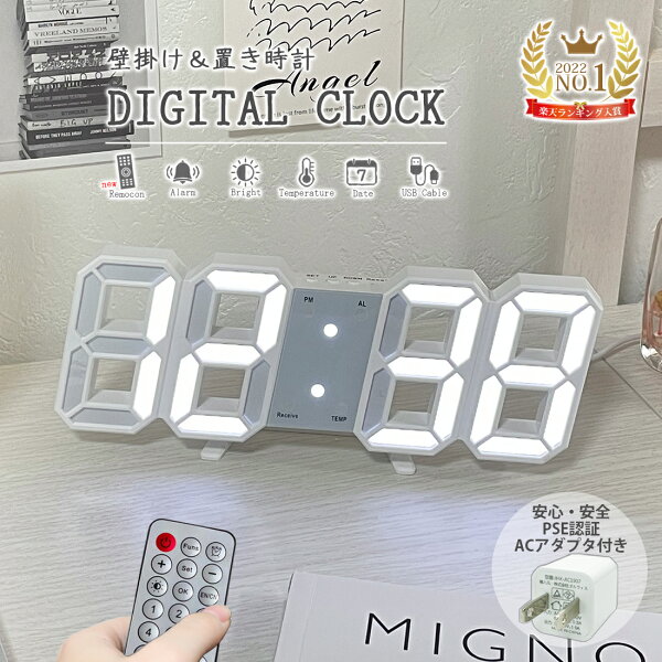 その他おすすめ時計 北欧インテリア雑貨 商品名 3D LED 時計 置き時計 壁掛け時計 掛け時計 インテリア LEDデジタル 小型 スタンド ウォールクロック リビング 目覚まし アラーム 時間 時刻 日付 温度 3段階 調光 省エネ 多機能 USB電源 給電 おしゃれ かわいい ギフト プレゼント 韓国風インテリア 【商品詳細】 セット内容 ・時計本体 × 1 ・リモコン × 1 ・スタンドパーツ × 1 ・記憶用ボタン電池 × 1 ※商品にセットした状態でお届けします。