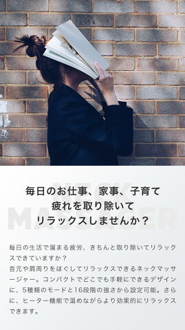 毎日のお仕事、家事、子育て疲れを取り除いてリラックスしませんか? 毎日の生活で溜まる疲労、きちんと取り除いてリラックスできていますか? 首元や肩周りをほぐしてリラックスできるネックマッサージャー。